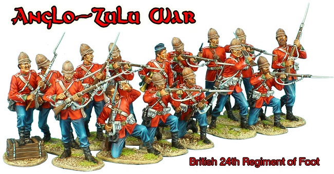 First Legion is pleased to present their newest figure range, the Anglo-Zulu War. Part of a larger plan to cover the wars of the British Empire, they are launching the range with the iconic Great British 24th Regiment of Foot. Elements of the regiment were heavily engaged in the desperate and heroic defense at Rorke's Drift where less than 150 British soldiers held off a Zulu force numbering close to 4,000. In this action, the 24th Foot were awarded more Victoria's Crosses than any other single regiment in a single action in British military history. Around the same time, the bulk of the regiment was decimated at the Battle of Isandlawana where over confidence led to the annihilation of the British and allied forces. With the stunning sculpting and hand painting that is First Legion's hallmark, these wonderful new figures can be used in a wide variety of dramatic displays. Zulu Warriors will follow up soon after the initial release. |